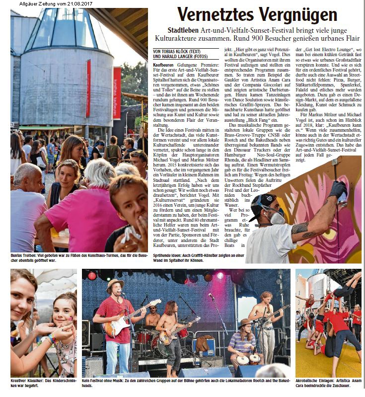 Am Freitag, den 18. und Samstag, den 19. August 2017 fand auf dem Spitalhof, im Zentrum von Kaufbeuren, das erste „Art & Vielfalt Sunset Festival“ statt.